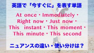 英語で「今すぐに」を意味する単語のニュアンスの違い、使い分けは?(At once・Immediately・Right now・Just now・This instant・This moment・This minute・This second)